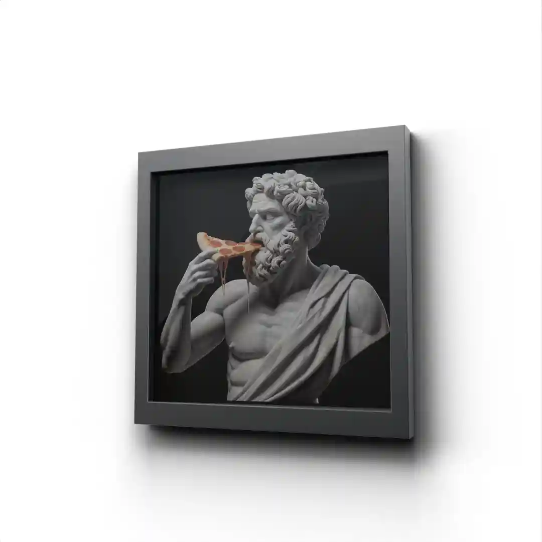 تابلو قاب و شیشه مجسمه یونانی با پیتزا