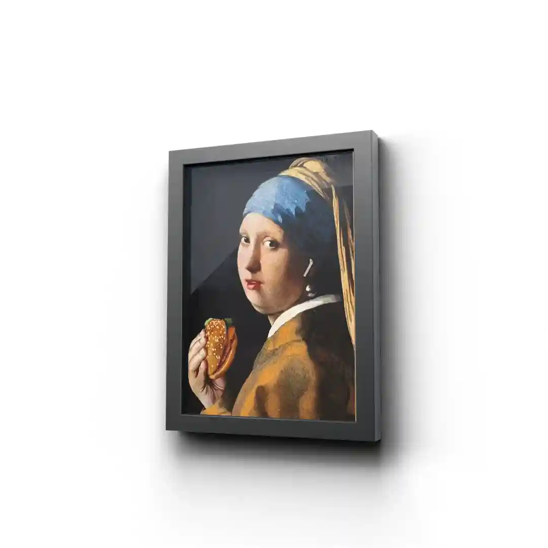 تابلو قاب و شیشه دختری با گوشواره مروارید هات داگ